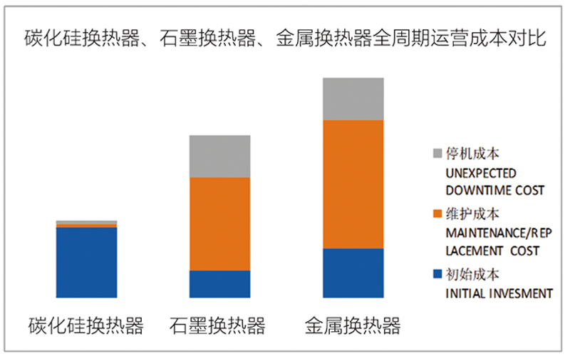 購(gòu)買、保養(yǎng)維護(hù)、意外停機(jī)等綜合成本優(yōu)于石墨及其它金屬換熱器。