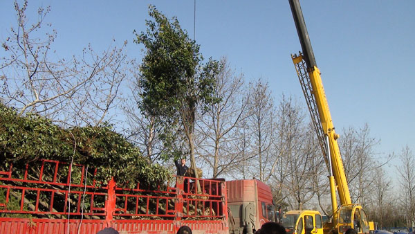 吊卸組開始吊卸第一棵樹