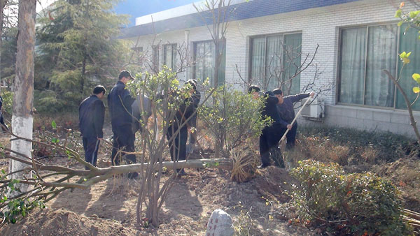 每年一度的“3月12日植樹節(jié)”在山東淄博太極搪玻璃設備公司年年都過。由于全國各地廣大用戶對太極搪玻璃反應釜等搪玻璃設備的需求越來越大,所以生產進度絕對不能耽誤,車間工人這天都會緊鑼密鼓的努力生產工作,所以植樹種花美化太極家園的任務則由公司辦公后勤人員來完成,在領導的分工安排下,吊卸組、修剪組、轉運組、挖坑組、種植組、支架組、澆灌組等分工明確、井然有序大家一同努力來把太極家園美化。