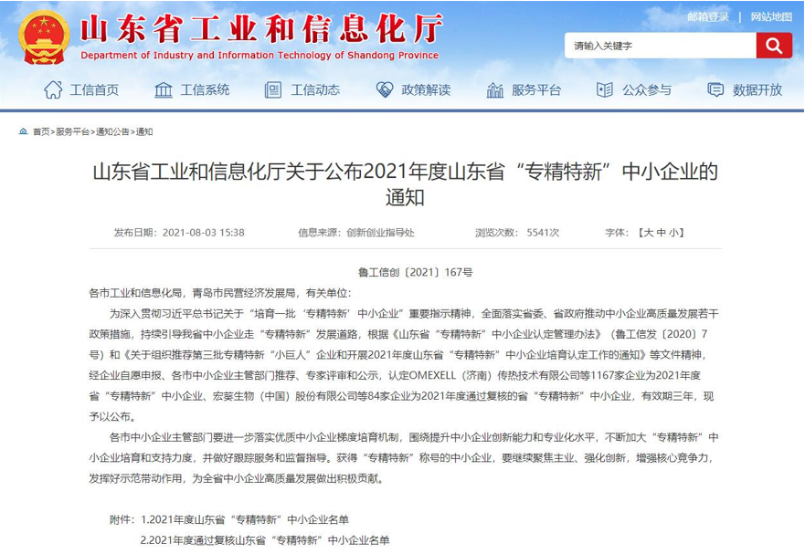 近日,山東省工業(yè)和信息化廳發(fā)布了關(guān)于公布2021年度山東省“專精特新”企業(yè)的通知,淄博太極工業(yè)搪瓷有限公司榮耀上榜。