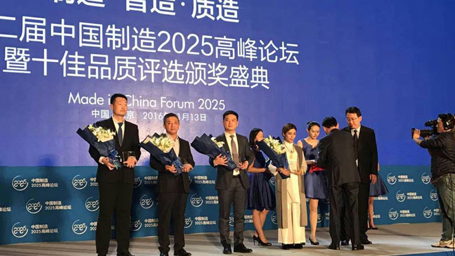 由中央電視臺CCTV《品質(zhì)》欄目和《中國經(jīng)濟觀察報》聯(lián)合主辦的“2016年度中國制造十佳品質(zhì)”評選頒獎活動暨第二屆中國制造2025高峰論壇,于2016年11月13日在北京國家會議中心隆重舉行。